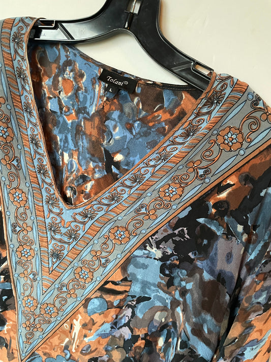 Top Long Sleeve By Tolani In Blue, Size: L