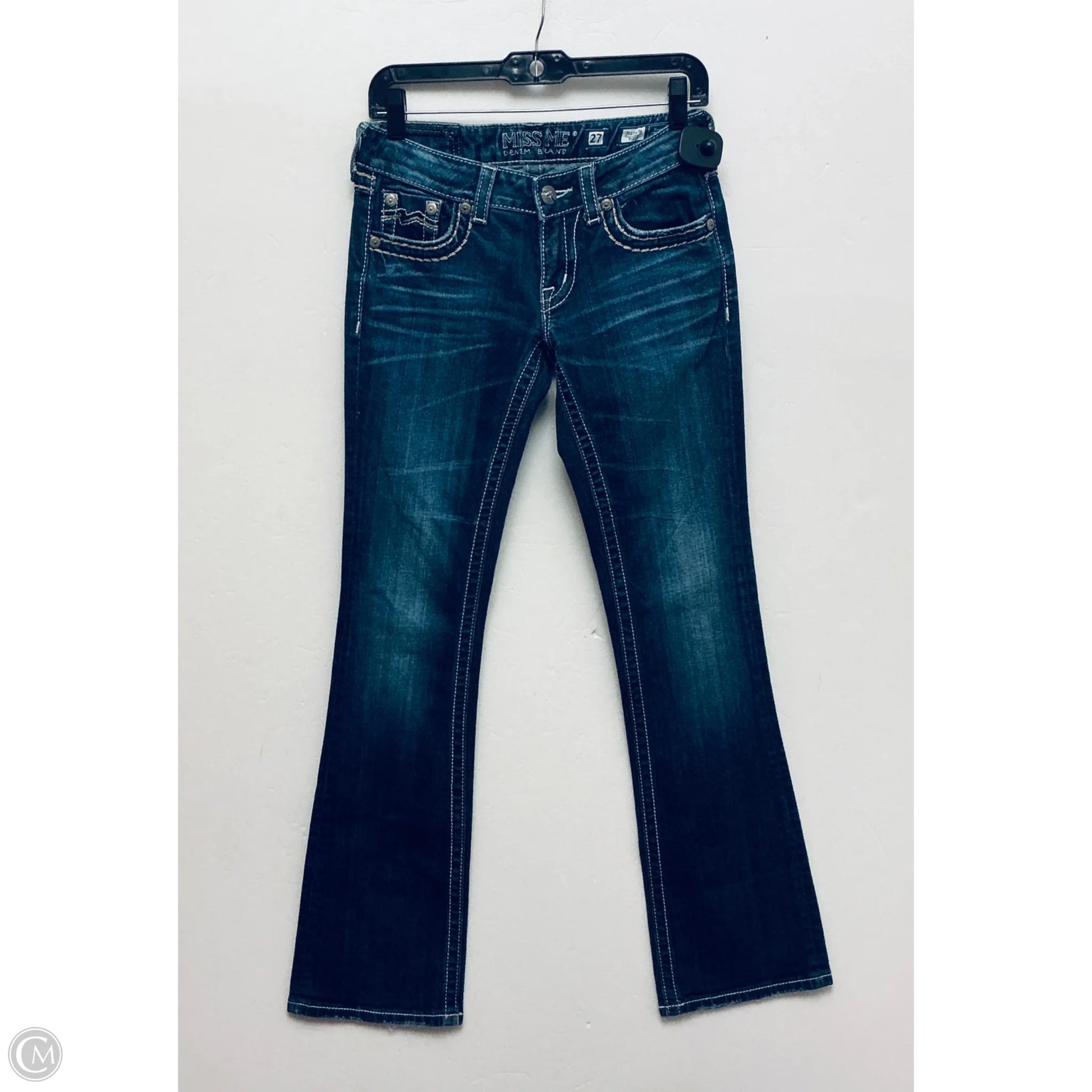 Slip into these Miss Me blue denim straight jeans in size 4 for a chic, comfy look that stands out!