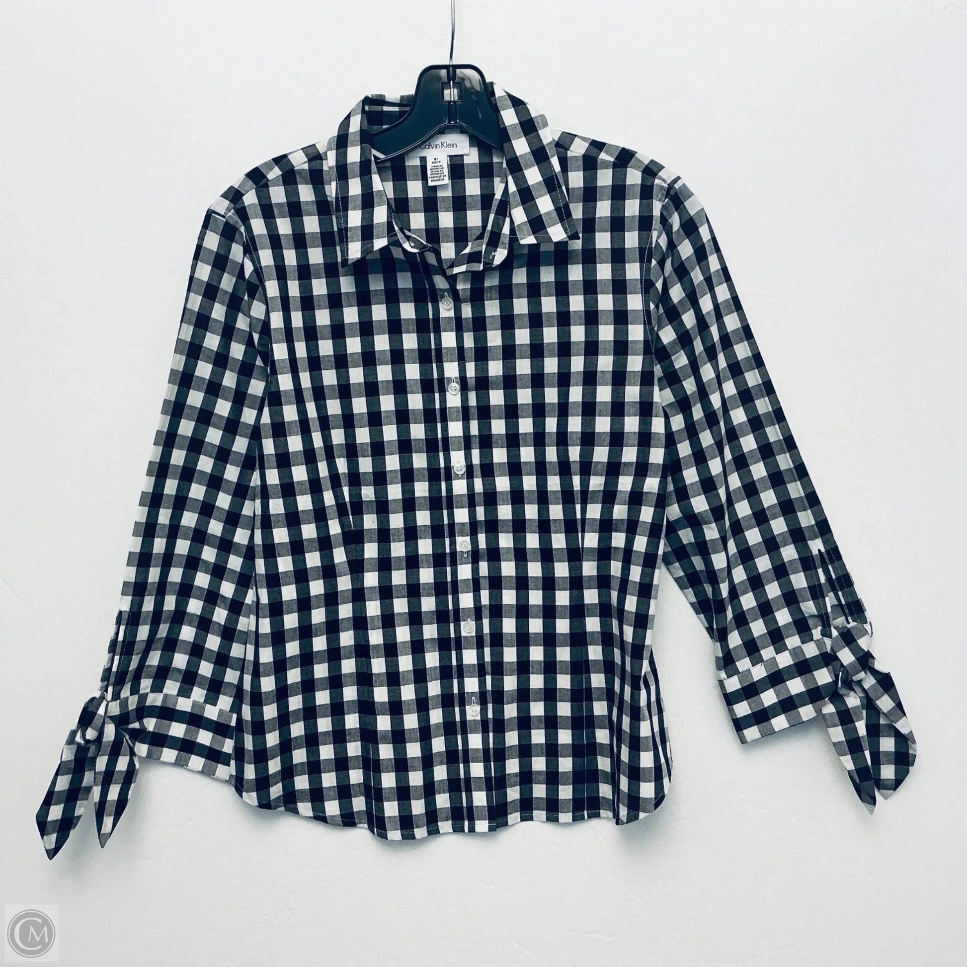 Top Long Sleeve By Calvin Klein In Checkered Pattern, Size: S