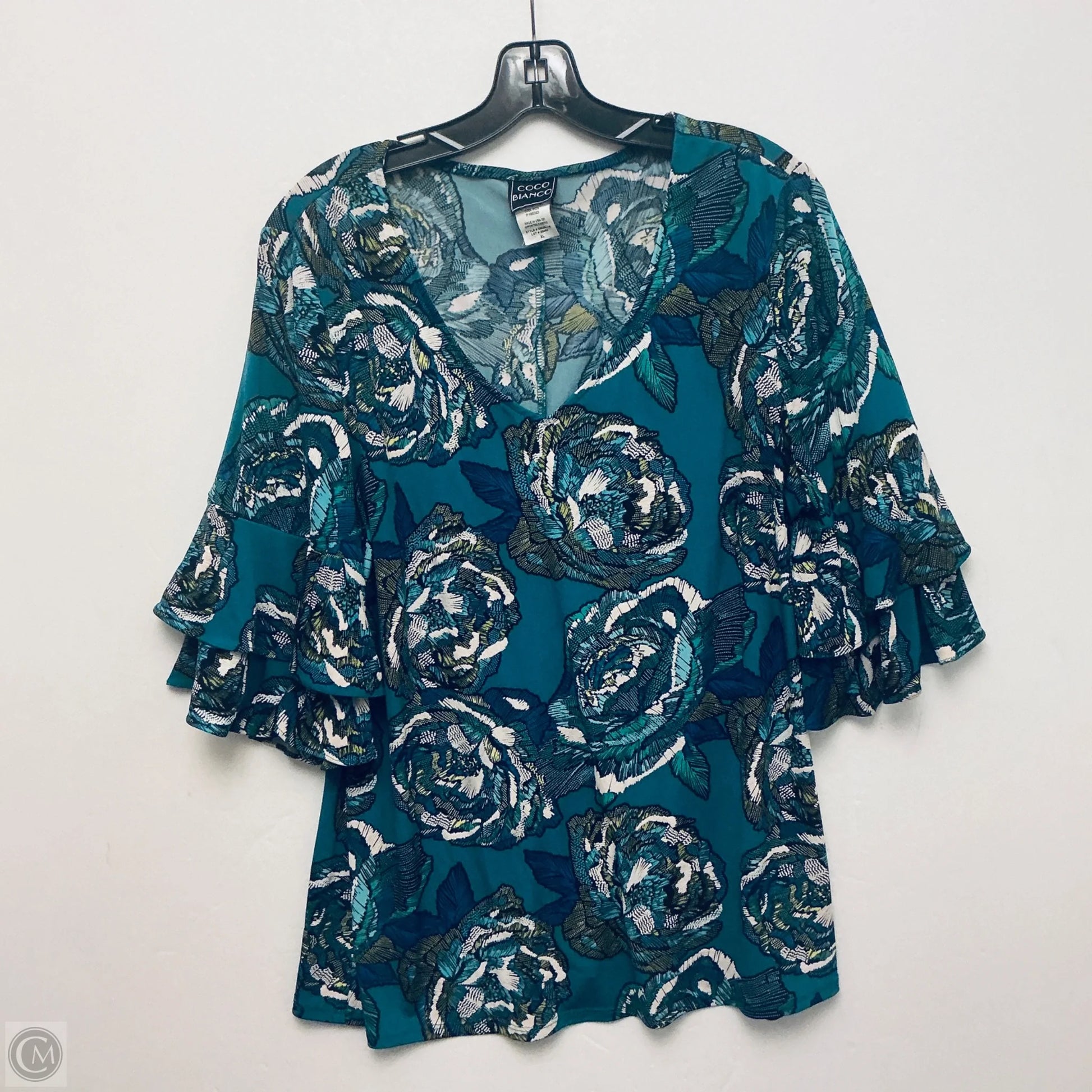Top Short Sleeve By Coco Bianco In Teal, Size: Xl